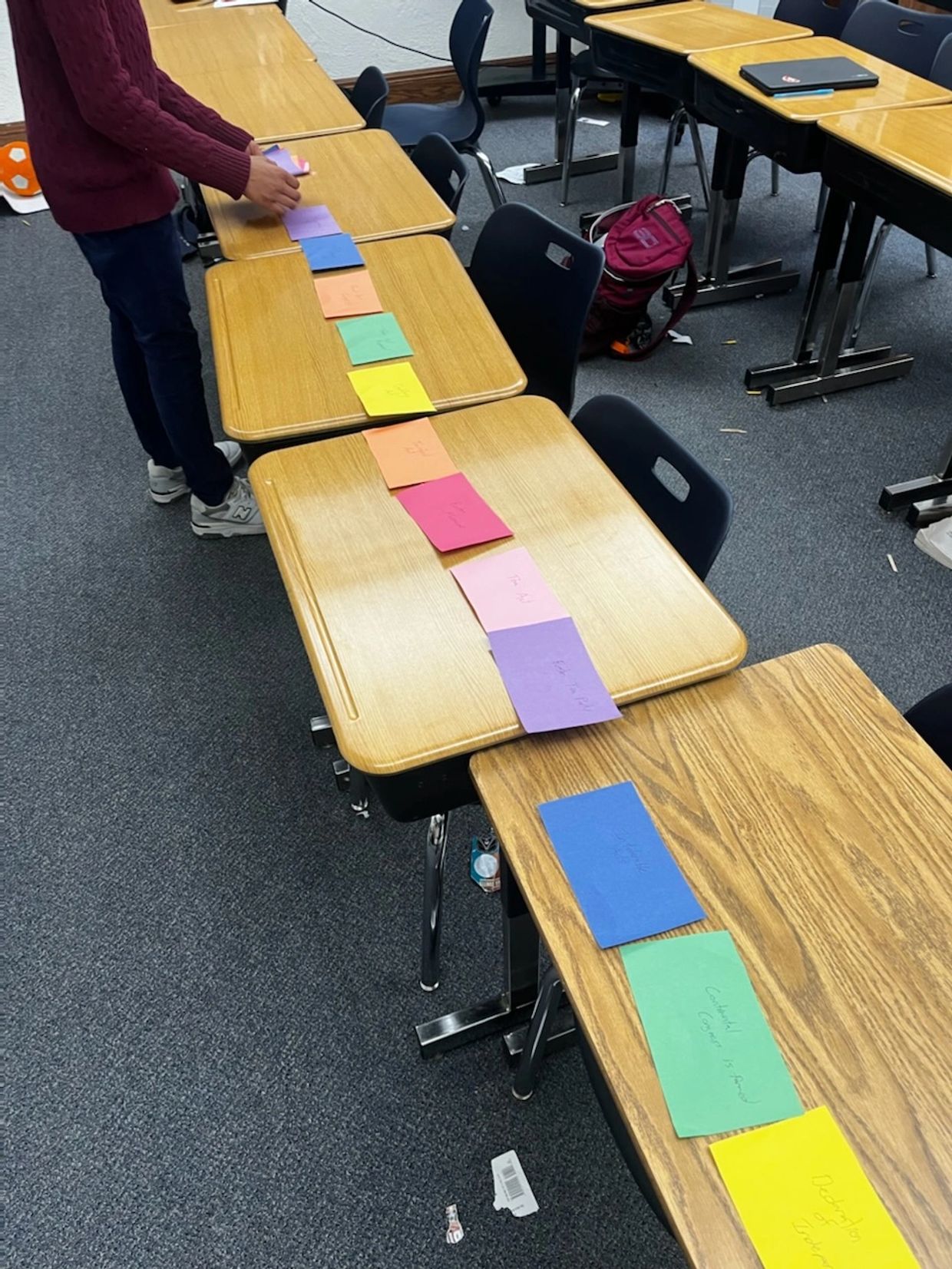 With Harkness-style and Socratic conversation, I guided him through finding connections between the “why” of each of these cards. We were able to first establish upper and lower bounds for the timeline, then through discussing the connections between the events and tracing the causal through-lines that connect all human history, he successfully ordered the events without the dates. When we later returned to strategies to memorize the dates, he flew through the activity because his understanding was contextualized.