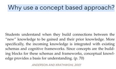 Because deep learning is built on students' prior understandings, it's fair to say that education is metaphor - When students can see that understanding one topic helps them understand others, they're prepared for future challenges. Concepts provide the bridge between topics to enable deep learning.